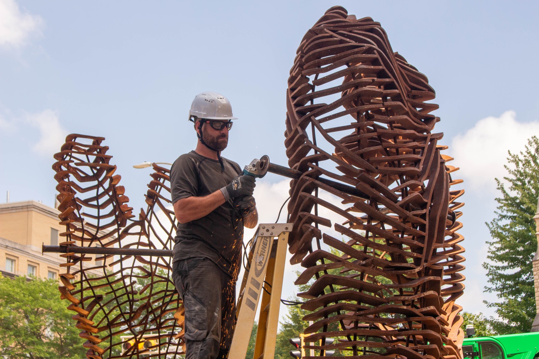 Ghost Forest is made out of weathering steel and is 16ft tall. The sculpture will stand outside of the northeast entrance of Morgridge Hall.