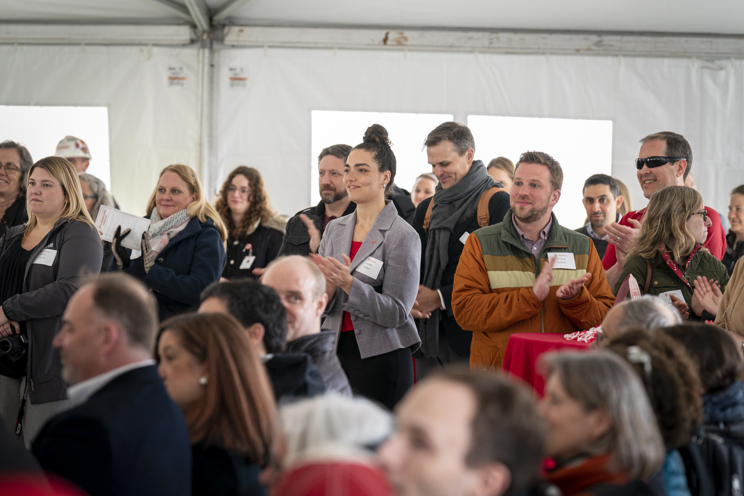 Gov. Tony Evers, UW System President Jay Rothman, Chancellor Jennifer Mnookin, Interim Provost Eric Wilcots and Tom Erickson, founding director of CDIS, offered their thanks to the Morgridges and Wisconsin Alumni Research Foundation for their investments in the building at the groundbreaking, also honoring the members of the UW–Madison community and design and construction professionals who will make the nearly 350,000-square-foot structure a reality over the next two years.