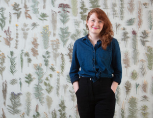 Amanda McCavour’s site-specific installation draws from her original work created for the University of Wisconsin-Madison in 2019, which previously hung in the Chazen Museum of Art. Her process began with visits to the Wisconsin State Herbarium, where she studied preserved botanical collections, and the Helen Louise Allen Textile Collection. This research informed her ongoing exploration of connections between scientific documentation and decorative patterns found in textiles and wallpaper.