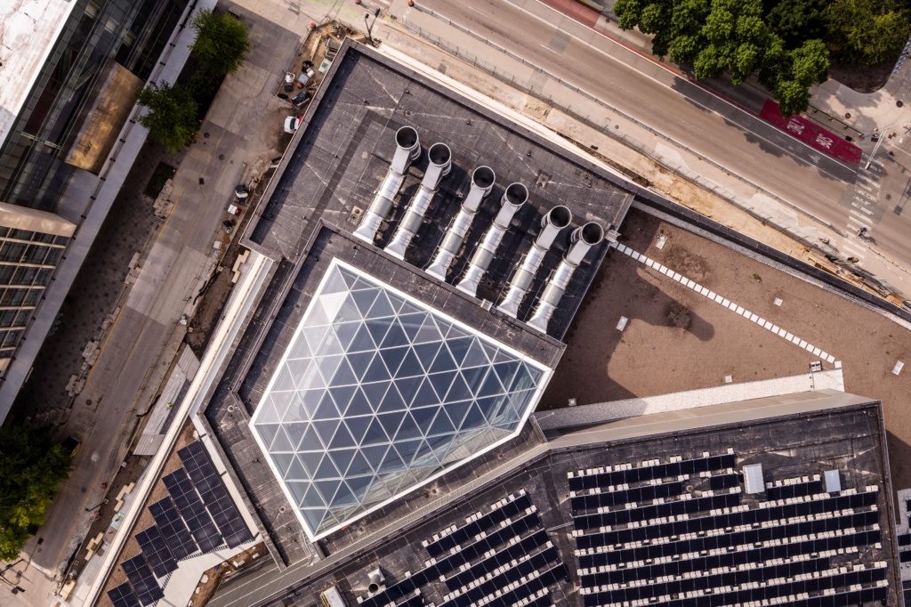 • 300+ rooftop solar panels and a high-performance exterior reduces energy loss and makes heating and cooling more efficient.